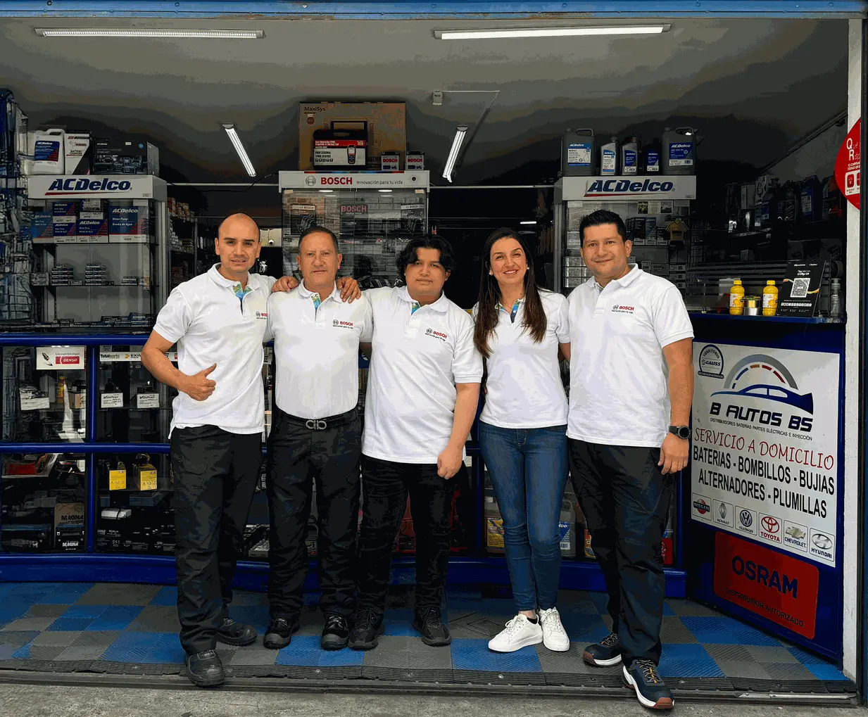 En Enero de 2004 B-AUTOS se reta a fortalecer la marca Bosch en el país conformando un pequeño pero sólido equipo de trabajo en la división automotriz. Un crecimiento sostenido, el compromiso hacia nuestros clientes, una red de servicios a nivel nacional y unas fuertes estrategias de mercadeo han logrado que en estos 18 años, seamos reconocidos como uno de los distribuidores y asesores más serios en el mercado de autopartes en Colombia, a través del trabajo con marcas reconociadas como Bosch y AC-Delco (GM) entre otras.